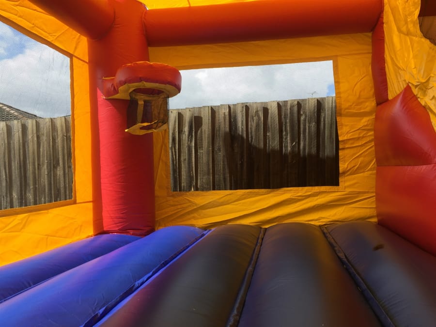This castle is a combo with slide, basketball hoop, jumping area & climb to top of slide